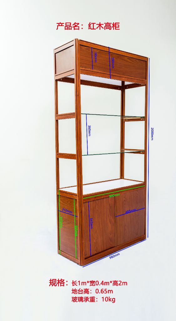 此商品四面都没有玻璃、无灯,且玻璃层板高度不可调整,介意勿选。